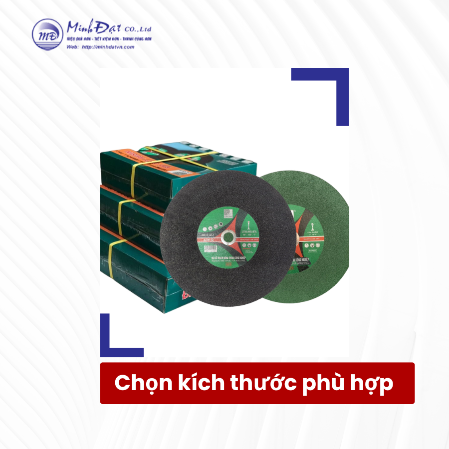 Kích thước của đá cắt sắt là yếu tố đầu tiên bạn cần xem xét. Đá cắt sắt có nhiều kích thước khác nhau như 100mm, 150mm, 180mm, 350mm,... Tùy vào công việc cụ thể mà bạn chọn kích thước phù hợp. Ví dụ, nếu bạn cần cắt những vật liệu có kích thước lớn, nên chọn đá cắt sắt 350mm, còn nếu cắt các chi tiết nhỏ thì đá cắt sắt 100mm sẽ là lựa chọn tốt hơn.