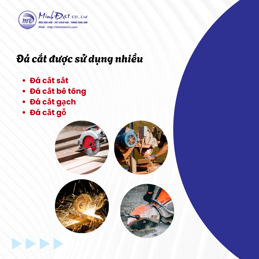 Đá Cắt Sắt: Được làm từ các hạt kim cương nhân tạo hoặc các vật liệu siêu cứng khác. Có khả năng cắt các loại sắt, thép, inox với độ chính xác cao. Loại đá cắt này thường có Độ bền cao, chịu được nhiệt độ cao.
