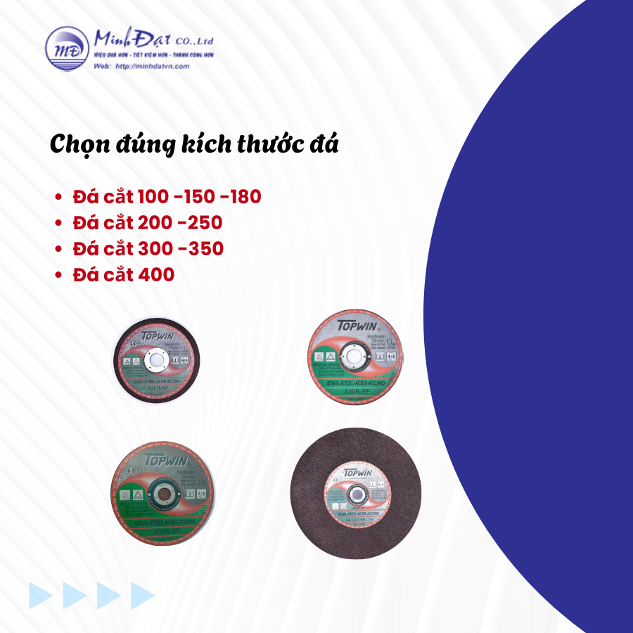 Kích thước và độ dày của vật liệu: Đá cắt có nhiều kích thước khác nhau, từ đường kính nhỏ đến lớn. Chọn đá cắt có đường kính tương ứng với kích thước của máy cắt và độ dày của vật liệu để đảm bảo hiệu quả làm việc.