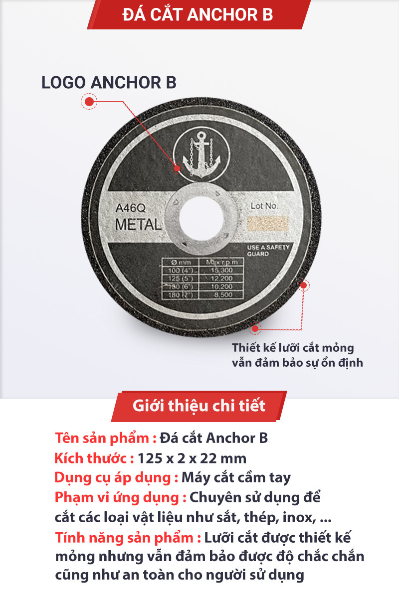 Đá cắt Anchor B 125 x 2 x 22mm