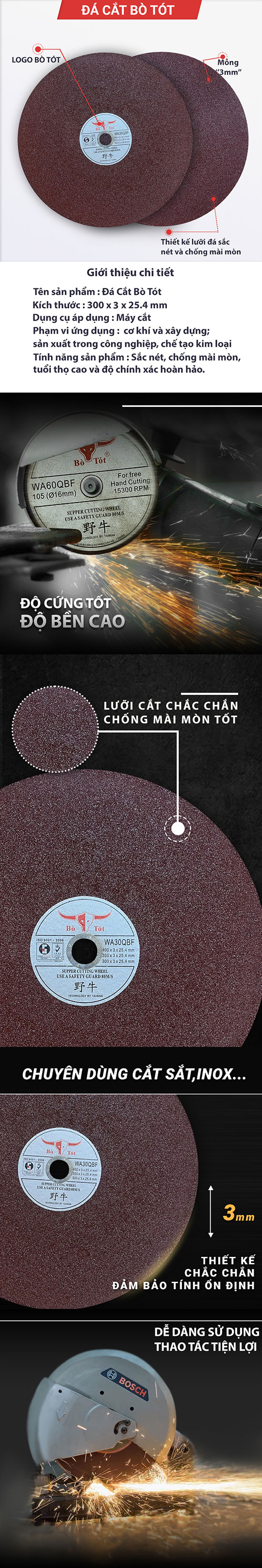 Đá cắt Bò Tót 300 x 3 x 25,4mm