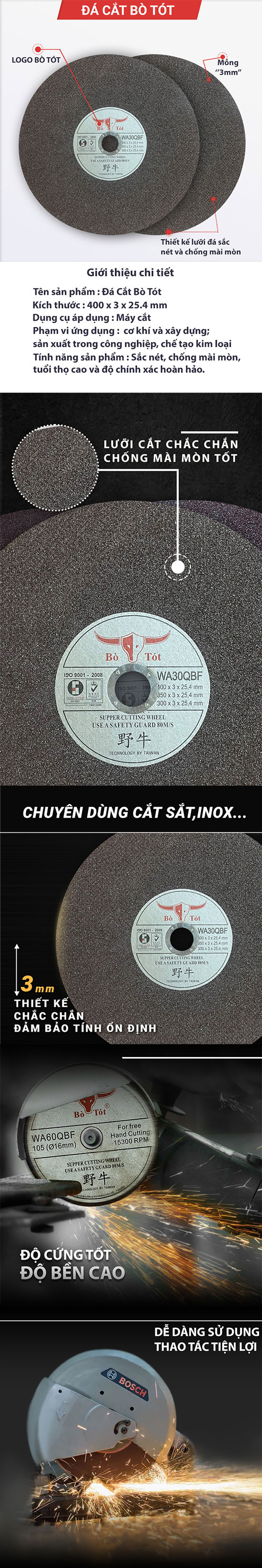 Mô tả – Đá cắt Bò tót là sản phẩm cao cấp trên thị trường với các thương hiệu đá cắt hiện nay, sản phẩm được tin dùng ở đa phần là khách hàng cá nhân, cơ sở sản xuất nhỏ lẻ bởi thiết kế siêu mỏng nhưng lực cắt rất bén, bề mặt cắt sản phẩm đẹp tạo nên tính thẩm mĩ hơn cho các nguyên liệu và khâu chế tác sản phẩm – Thiết kế sản phẩm đá cắt Bò tót vừa đơn giản vừa tiện lợi, giúp khách hàng dễ dàng đọc thông tin trên nhãn hiệu: ký hiệu bảo hộ,...