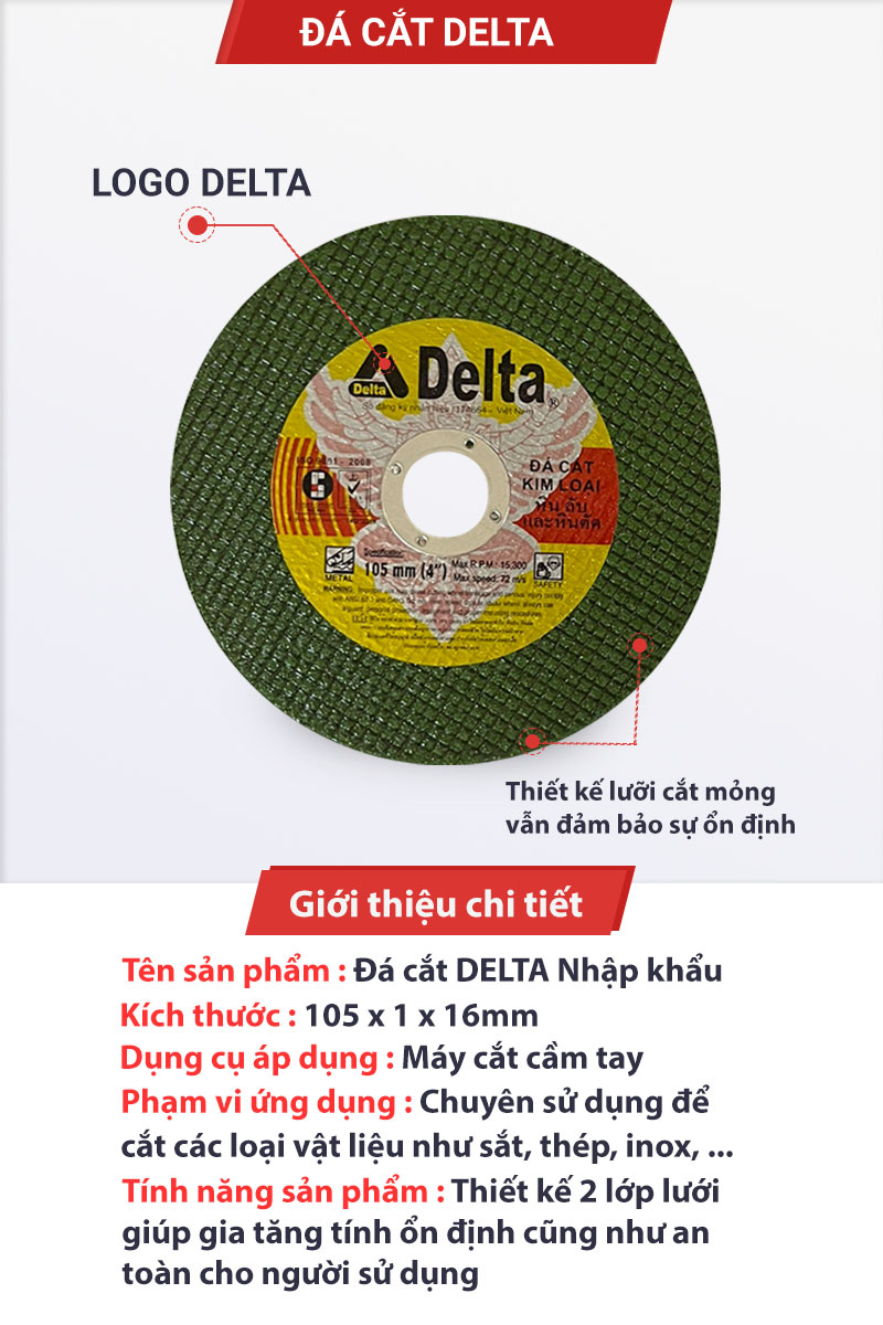 Đá cắt Delta 2 lưới xanh 105 x 1 x 16mm