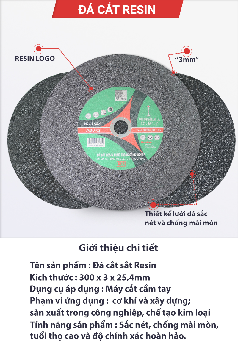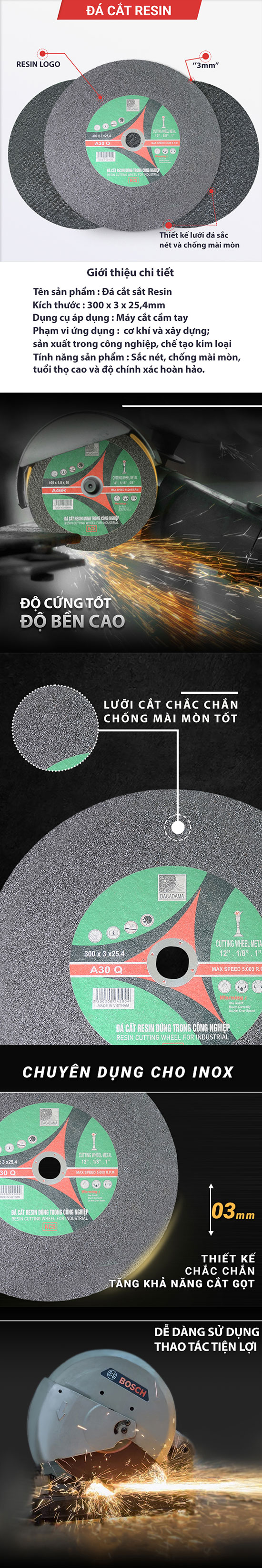 Mô tả – Đá cắt RESIN là sản phẩm cao cấp trên thị trường với các thương hiệu đá cắt hiện nay, sản phẩm được tin dùng ở đa phần là khách hàng cá nhân, cơ sở sản xuất nhỏ lẻ bởi thiết kế siêu mỏng nhưng lực cắt rất bén, bề mặt cắt sản phẩm đẹp tạo nên tính thẩm mĩ hơn cho các nguyên liệu và khâu chế tác sản phẩm – Thiết kế sản phẩm đá cắt RESIN vừa đơn giản vừa tiện lợi, giúp khách hàng dễ dàng đọc thông tin trên nhãn hiệu: ký hiệu bảo hộ,...