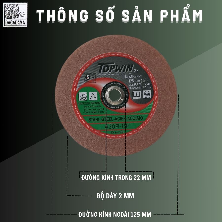 Mô tả – Đá cắt TOPWIN là sản phẩm cao cấp trên thị trường với các thương hiệu đá cắt hiện nay, sản phẩm được tin dùng ở đa phần là khách hàng cá nhân, cơ sở sản xuất nhỏ lẻ bởi thiết kế siêu mỏng nhưng lực cắt rất bén, bề mặt cắt sản phẩm đẹp tạo nên tính thẩm mĩ hơn cho các nguyên liệu và khâu chế tác sản phẩm – Thiết kế sản phẩm đá cắt Topwin vừa đơn giản vừa tiện lợi, giúp khách hàng dễ dàng đọc thông tin trên nhãn hiệu: ký hiệu bảo hộ,...