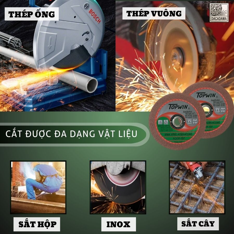 Mô tả – Đá cắt TOPWIN là sản phẩm cao cấp trên thị trường với các thương hiệu đá cắt hiện nay, sản phẩm được tin dùng ở đa phần là khách hàng cá nhân, cơ sở sản xuất nhỏ lẻ bởi thiết kế siêu mỏng nhưng lực cắt rất bén, bề mặt cắt sản phẩm đẹp tạo nên tính thẩm mĩ hơn cho các nguyên liệu và khâu chế tác sản phẩm – Thiết kế sản phẩm đá cắt Topwin vừa đơn giản vừa tiện lợi, giúp khách hàng dễ dàng đọc thông tin trên nhãn hiệu: ký hiệu bảo hộ,..