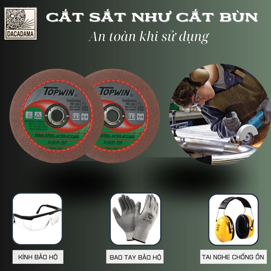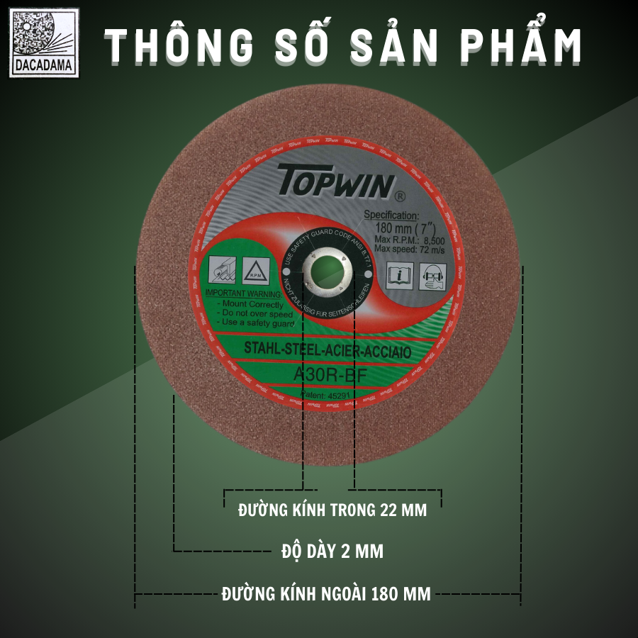 Mô tả – Đá cắt TOPWIN là sản phẩm cao cấp trên thị trường với các thương hiệu đá cắt hiện nay, sản phẩm được tin dùng ở đa phần là khách hàng cá nhân, cơ sở sản xuất nhỏ lẻ bởi thiết kế siêu mỏng nhưng lực cắt rất bén, bề mặt cắt sản phẩm đẹp tạo nên tính thẩm mĩ hơn cho các nguyên liệu và khâu chế tác sản phẩm – Thiết kế sản phẩm đá cắt Topwin vừa đơn giản vừa tiện lợi, giúp khách hàng dễ dàng đọc thông tin trên nhãn hiệu: ký hiệu bảo hộ,..