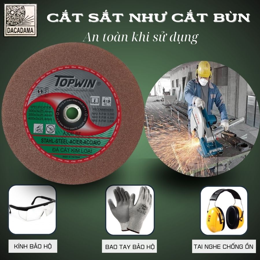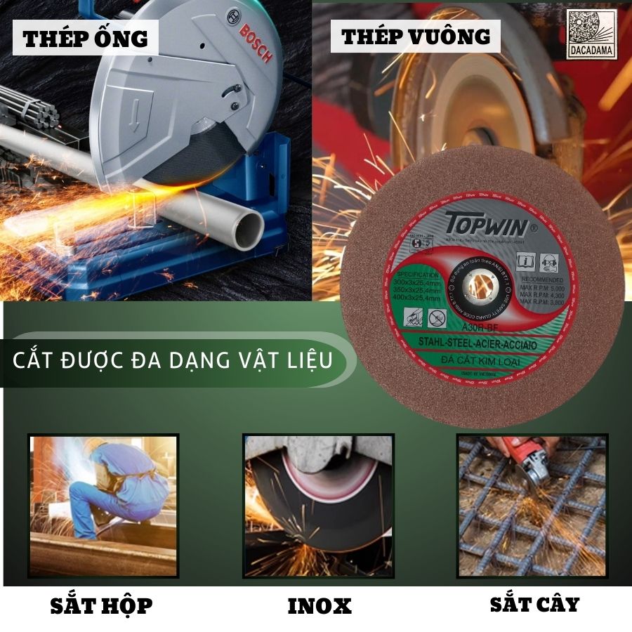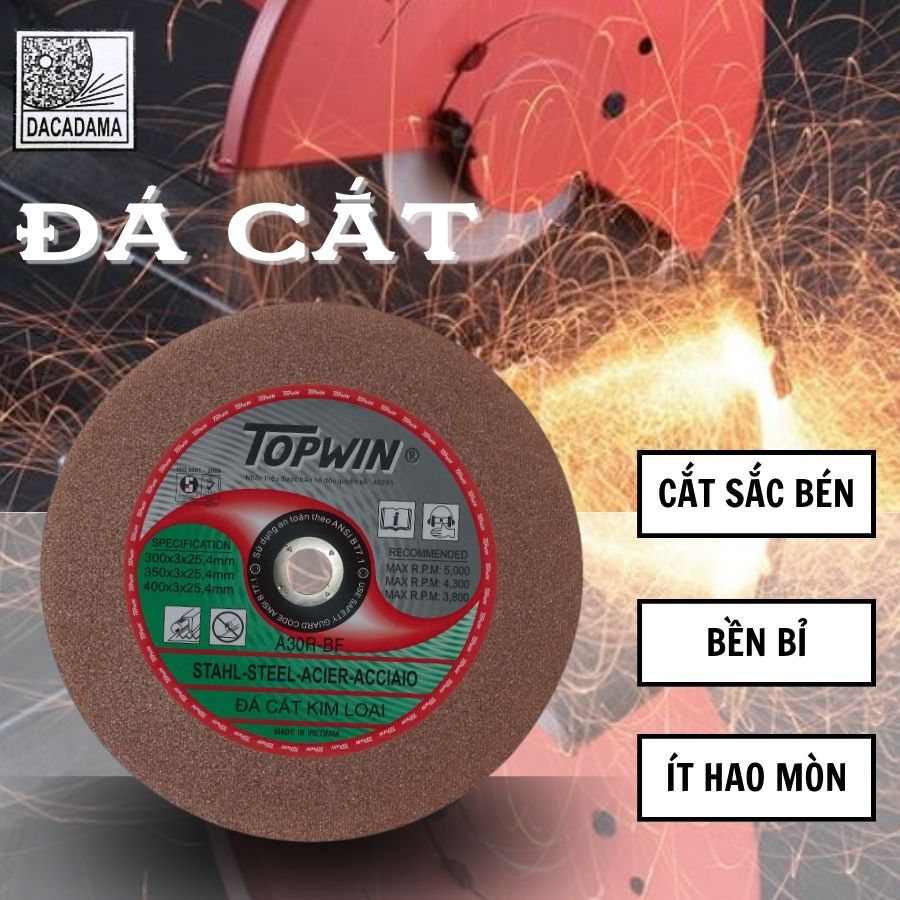 Mô tả – Đá cắt TOPWIN là sản phẩm cao cấp trên thị trường với các thương hiệu đá cắt hiện nay, sản phẩm được tin dùng ở đa phần là khách hàng cá nhân, cơ sở sản xuất nhỏ lẻ bởi thiết kế siêu mỏng nhưng lực cắt rất bén, bề mặt cắt sản phẩm đẹp tạo nên tính thẩm mĩ hơn cho các nguyên liệu và khâu chế tác sản phẩm – Thiết kế sản phẩm đá cắt Topwin vừa đơn giản vừa tiện lợi, giúp khách hàng dễ dàng đọc thông tin trên nhãn hiệu: ký hiệu bảo hộ,..