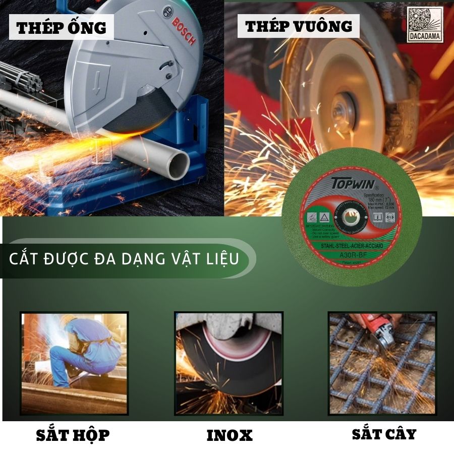 Mô tả – Đá cắt TOPWIN NHẬP KHẨU là sản phẩm cao cấp trên thị trường với các thương hiệu đá cắt hiện nay, sản phẩm được tin dùng ở đa phần là khách hàng cá nhân, cơ sở sản xuất nhỏ lẻ bởi thiết kế siêu mỏng nhưng lực cắt rất bén, bề mặt cắt sản phẩm đẹp tạo nên tính thẩm mĩ hơn cho các nguyên liệu và khâu chế tác sản phẩm – Thiết kế sản phẩm đá cắt Topwin vừa đơn giản vừa tiện lợi, giúp khách hàng dễ dàng đọc thông tin trên nhãn hiệu: ký hiệu bảo hộ,...