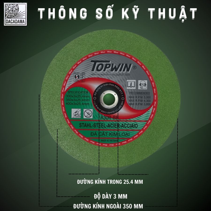 Đá cắt sắt TOPWIN NHẬP KHẨU 350 x 3 x 25,4mm