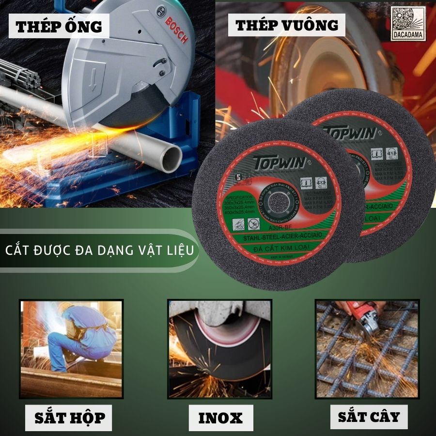 Mô tả – Đá cắt TOPWIN Tím là sản phẩm cao cấp trên thị trường với các thương hiệu đá cắt hiện nay, sản phẩm được tin dùng ở đa phần là khách hàng cá nhân, cơ sở sản xuất nhỏ lẻ bởi thiết kế siêu mỏng nhưng lực cắt rất bén, bề mặt cắt sản phẩm đẹp tạo nên tính thẩm mĩ hơn cho các nguyên liệu và khâu chế tác sản phẩm – Thiết kế sản phẩm đá cắt Topwin vừa đơn giản vừa tiện lợi, giúp khách hàng dễ dàng đọc thông tin trên nhãn hiệu: ký hiệu bảo hộ,...