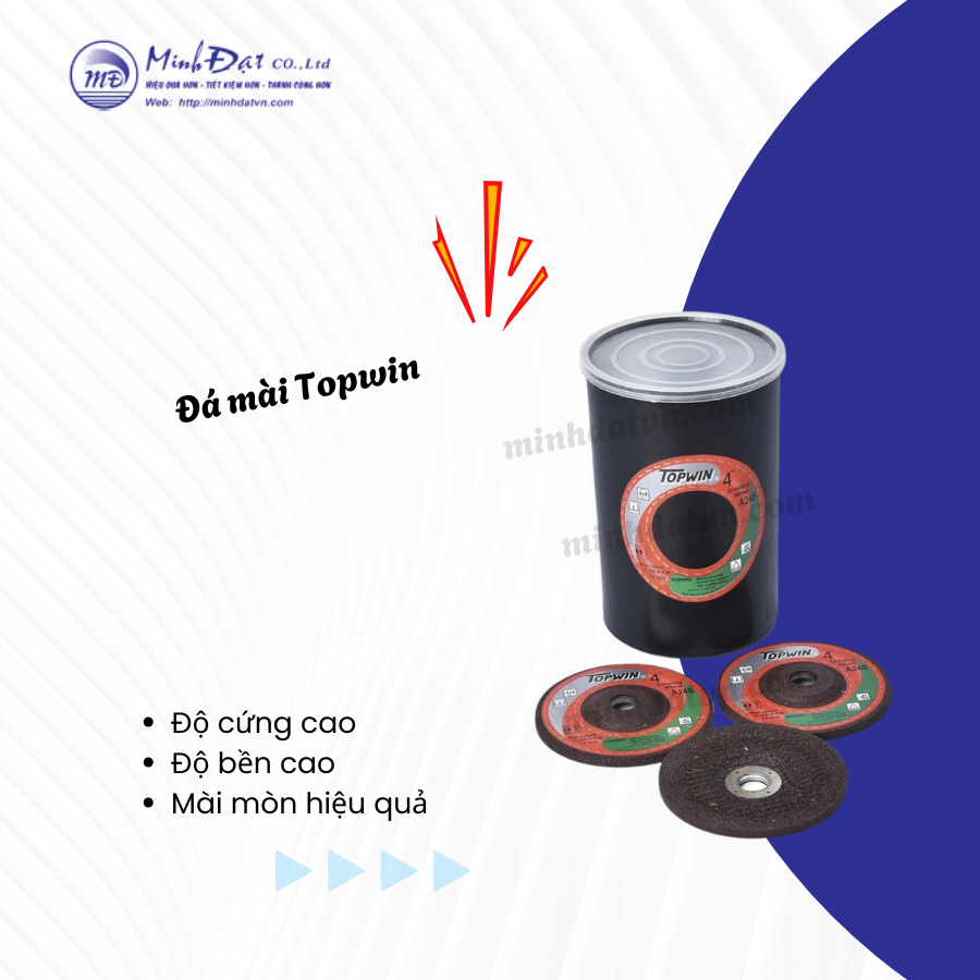 - Độ cứng cao: Đá mài Topwin có độ cứng vượt trội, giúp dễ dàng xử lý các vật liệu cứng như thép, inox, gốm sứ.